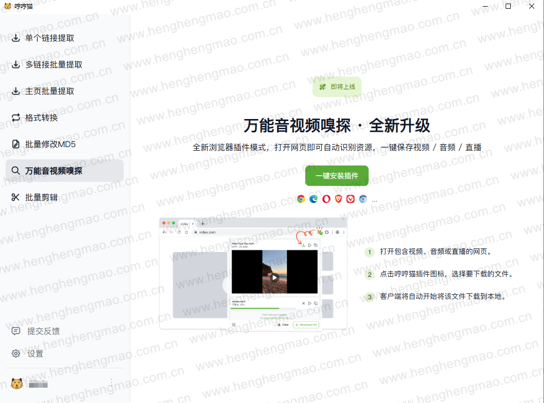 音频视频嗅探功能即将上线,后续会采用Chrome插件形式。
