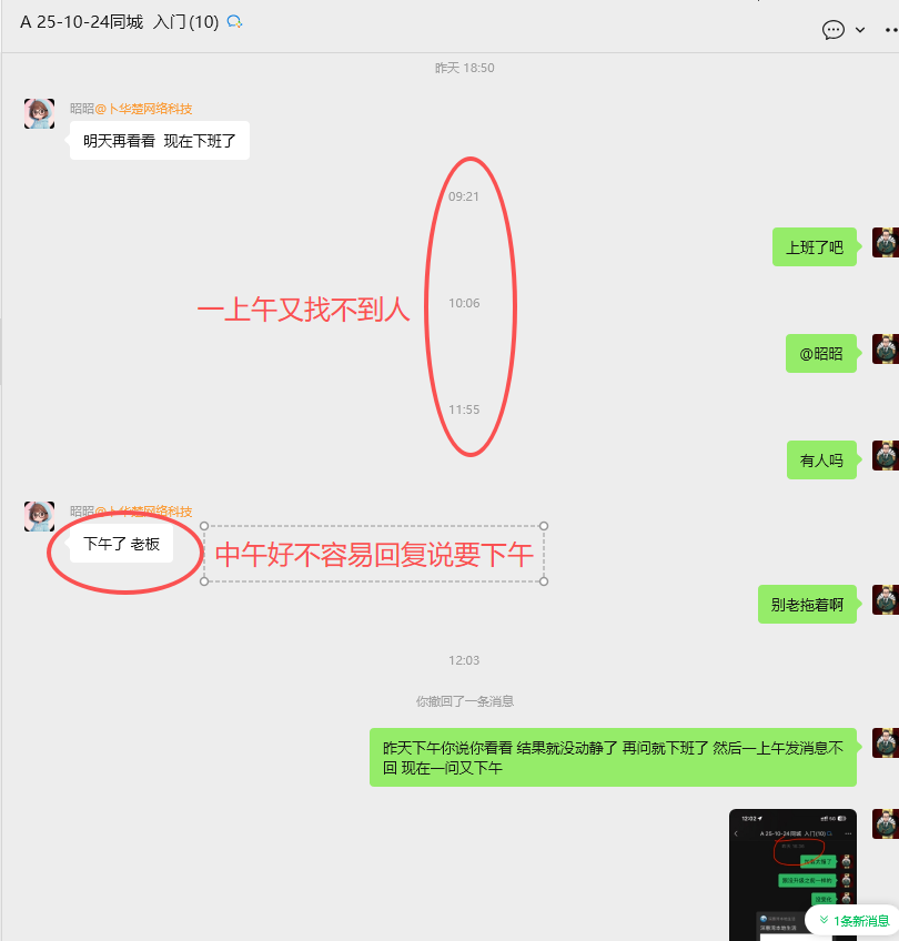 经常性失联,群里发消息没动静,要多次催促才回消息。