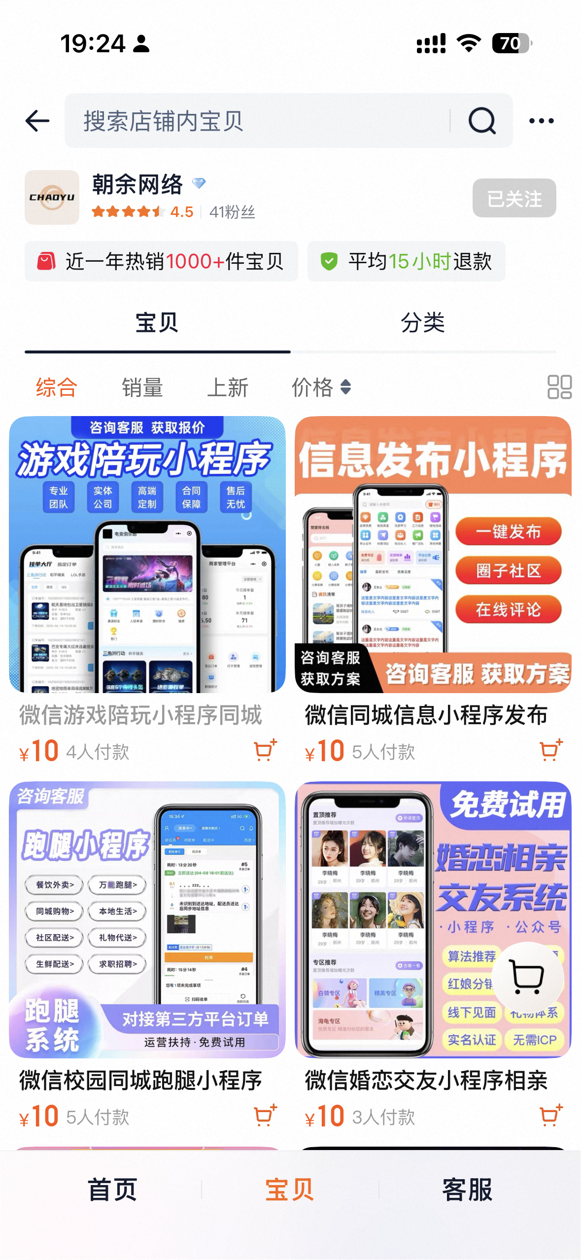 最近想搭建一个同城信息发布小程序,淘宝上找了一家专门做小程序搭建的店。